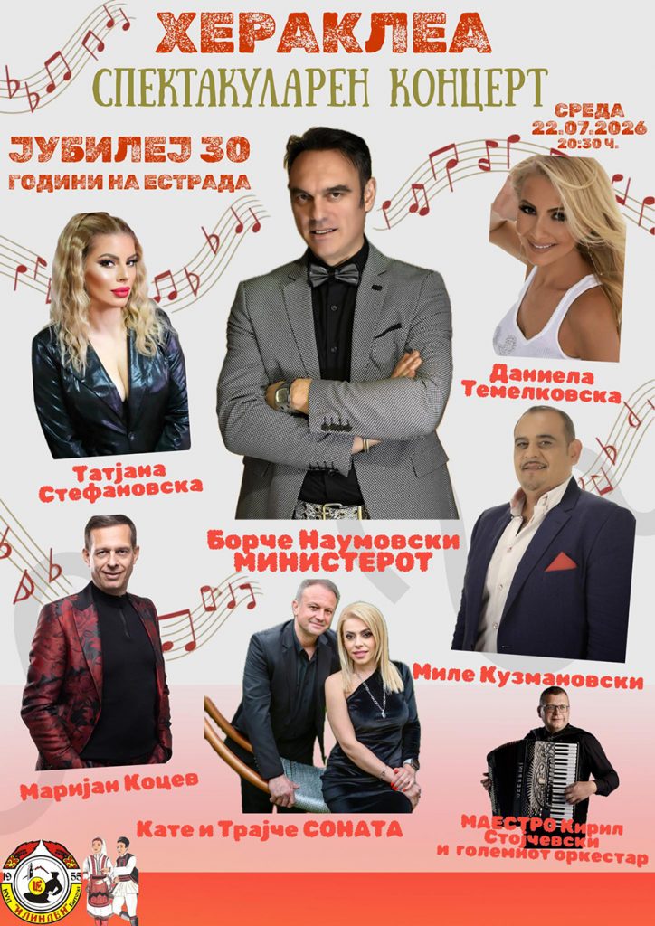 Како што неодамна ексклузивно прв објави музичкиот портал Музика24, познатиот македонски фолк пејач Борче Наумовски – „Министерот за естрада“, ова лето ќе одржи голем солистички концерт во Битола, на магичната сцена на античкиот локалитет Хераклеа Линкестис.
